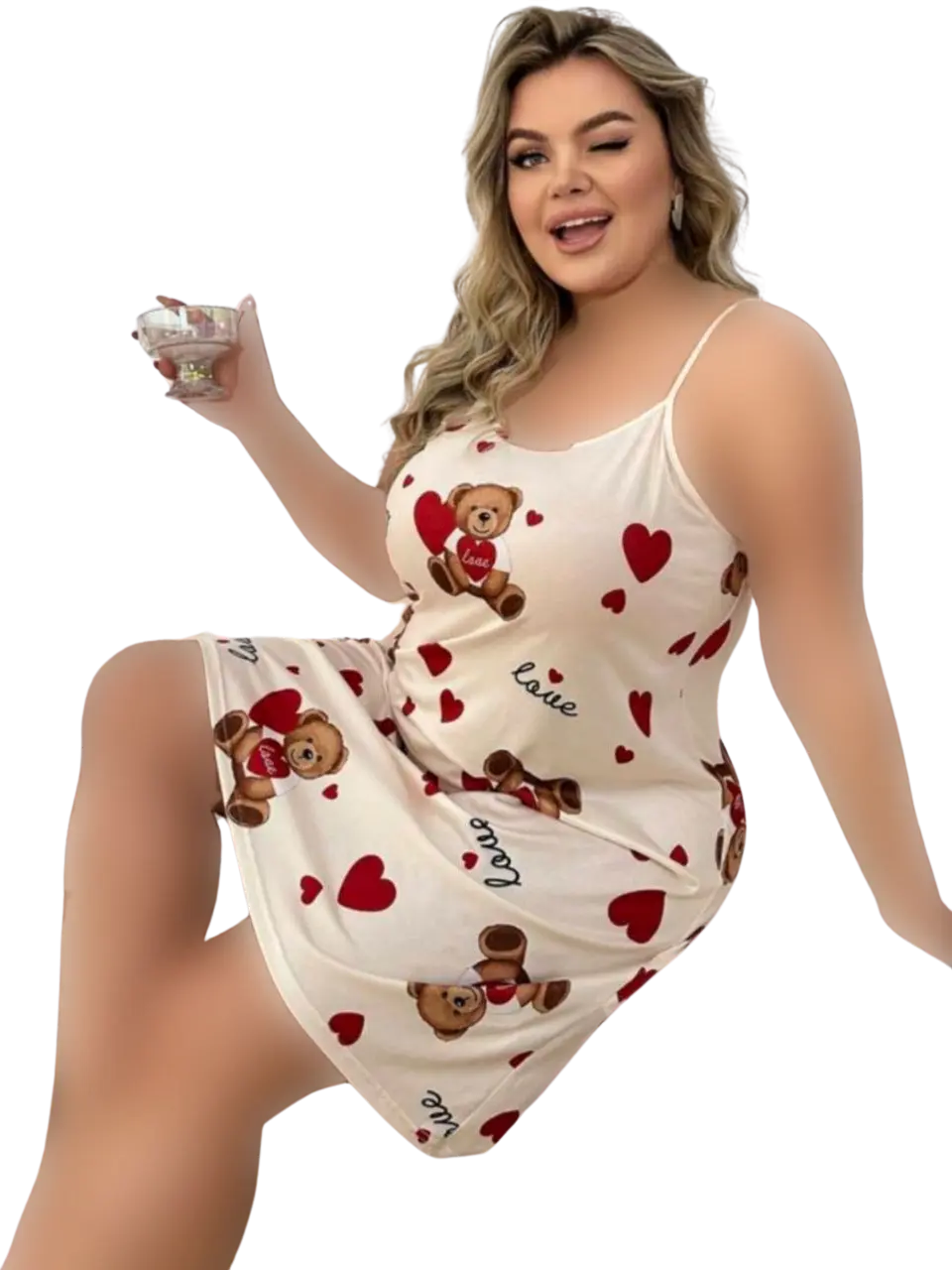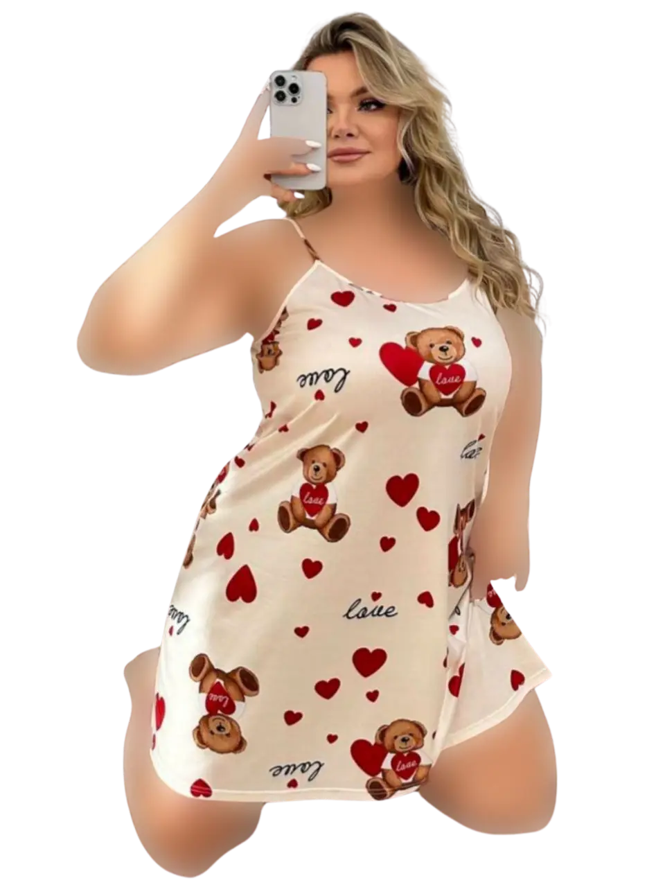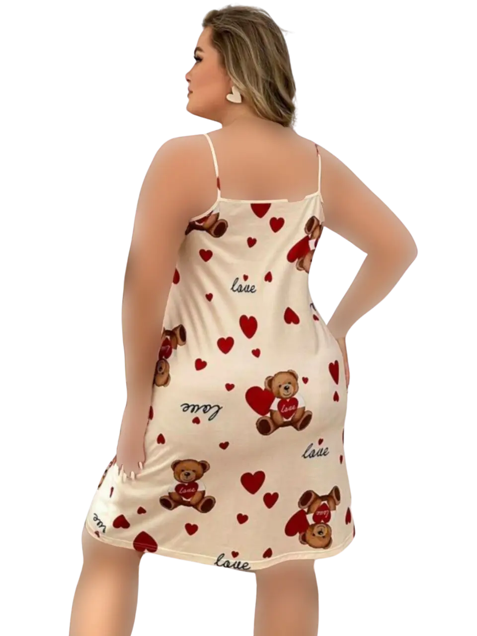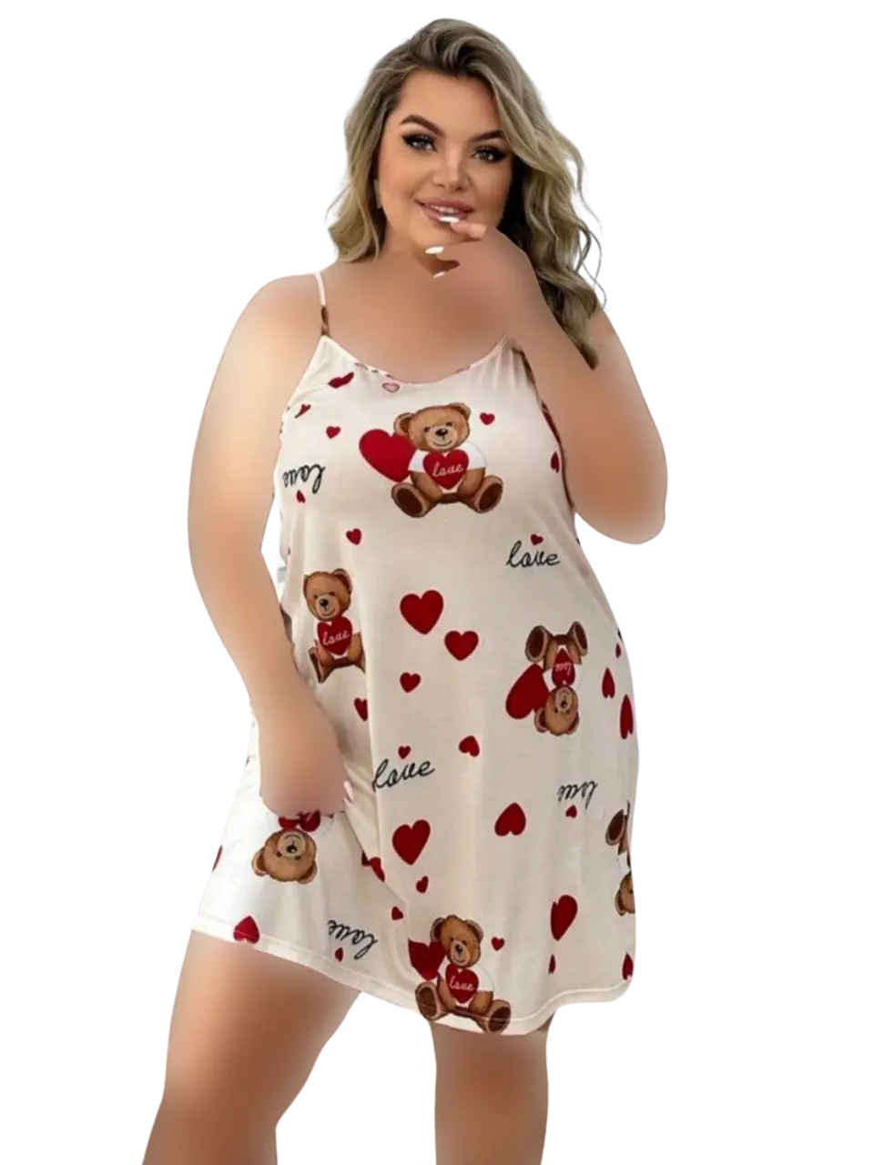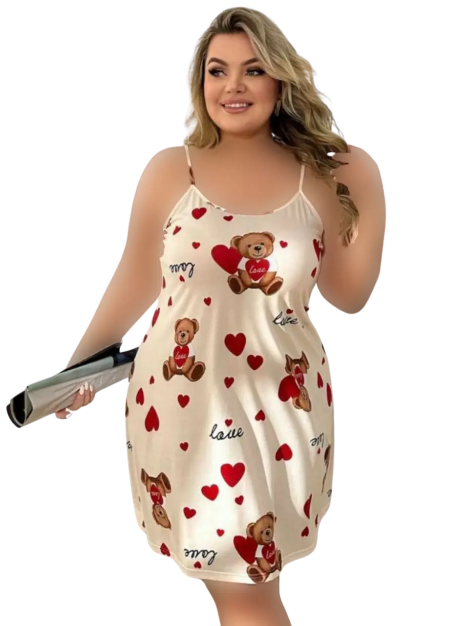 كاش مايوه واسع بيج سايز من بوليفارد، مصنوع من قطن سنجل ليكرا، يتميز برسومات دبدوب وقلوب حمراء. يناسب الأوزان من 80 كيلو إلى 110 كيلو، ليمنحكِ إطلالة مريحة وجذابة.