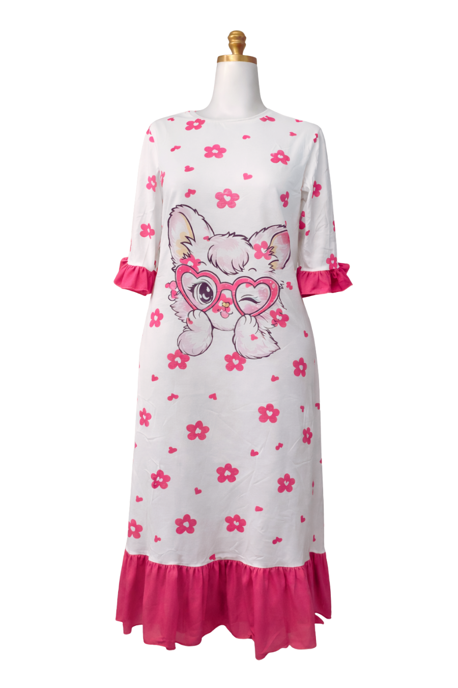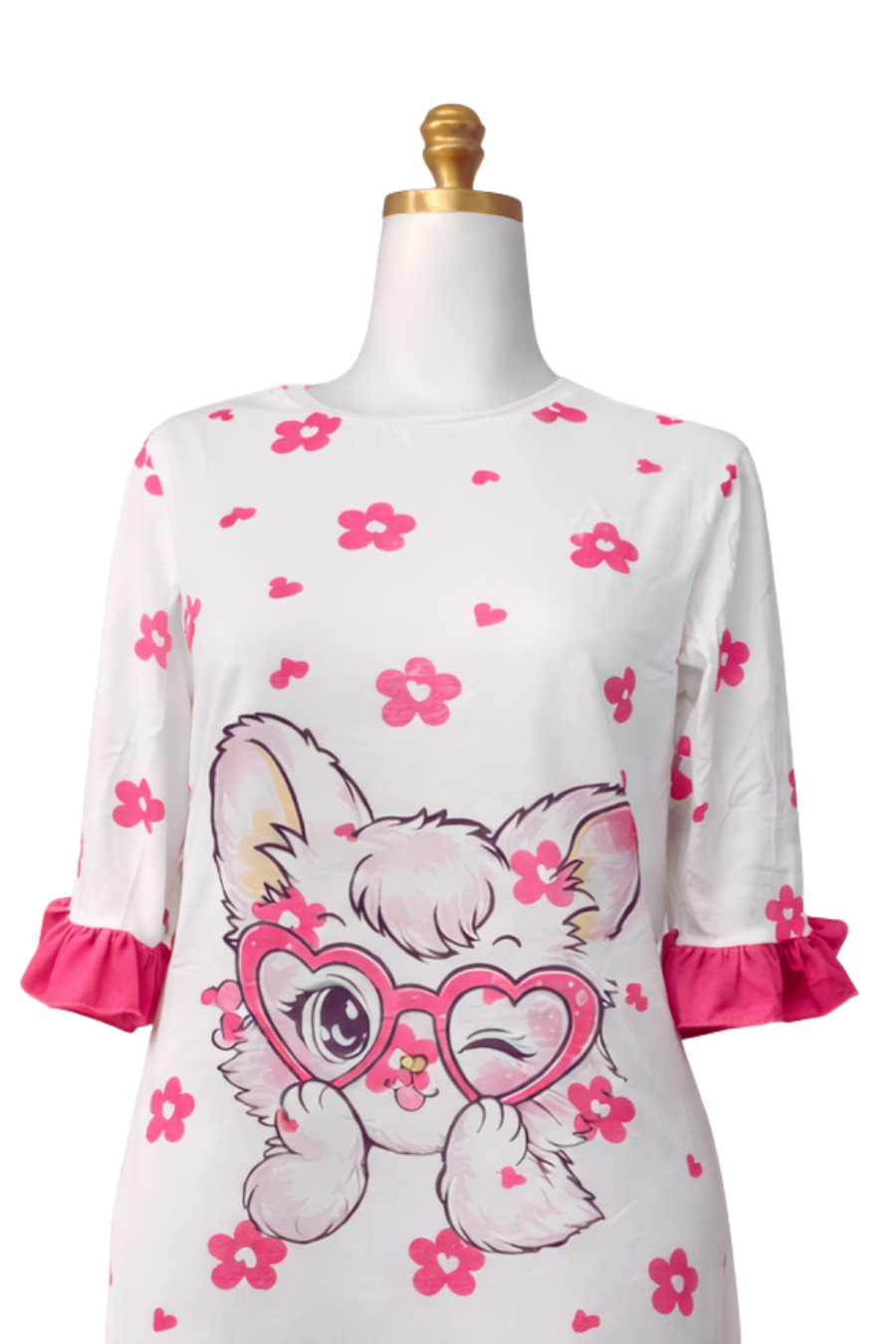 - التصميم: كاش طويل نص كم بنقشة كيوت