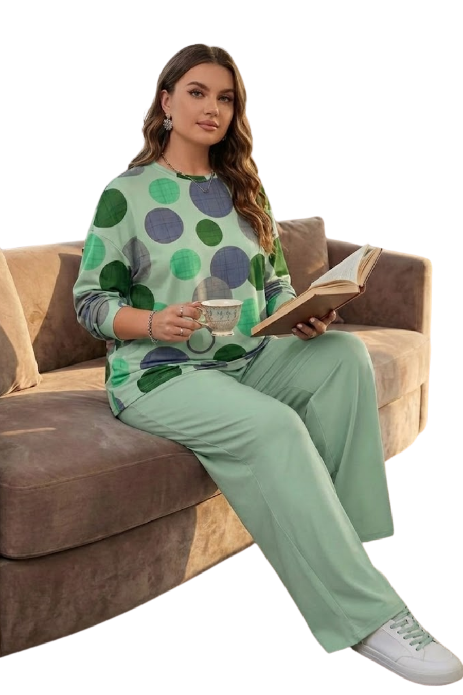 بجامة ميلتون بيج سايز بخامة سمر ميلتون ليكرا ناعمة ومريحة، بتدي إحساس دفّا خفيف وراحة طول اليوم، تلبيس واسع ومرن يناسب من 80 لـ 120 كجم، مثالية للبيت وقعدة الشتاء والراحة اليومية 💚🛋️